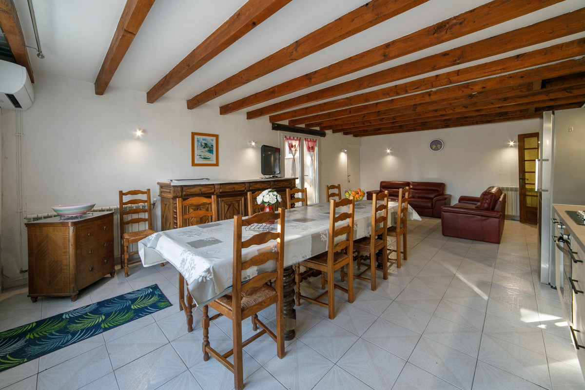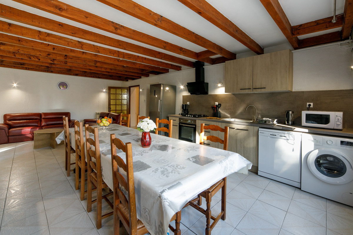 Pièce de vie : Table, chaises, Coin salon : canapés, Wifi, TV écran plat 80cm.